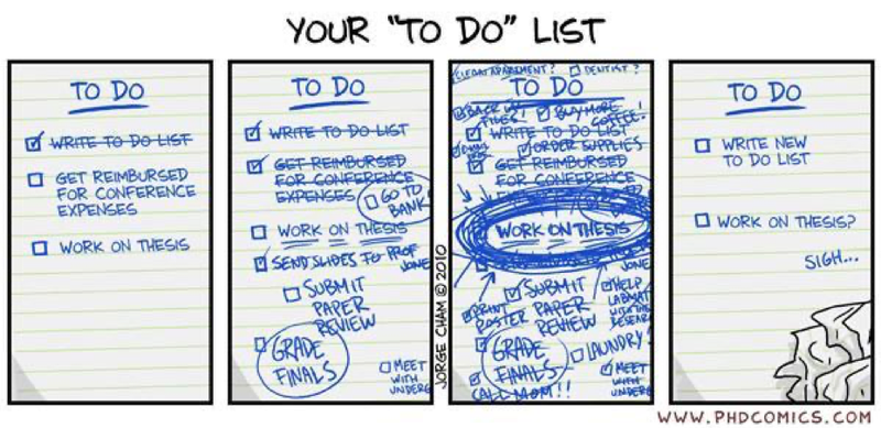 During a PhD, time always feels scarce and the days seem to fly by pretty quickly. Combining this with the pressure of the number of things you have to accomplish, the need to achieve a high standard and perhaps a certain lack of clear guidance, you may easily feel stressed. Moreover, completing a PhD is usually an individual process where your progress mostly depends on your own motivation and your organizational skills. For sure, having good time management strategies can be vital and may help reduce anxieties. Time management is all about to make the most efficient and effective use of the time you have, and allows you to deal with your duties, to meet deadlines, and to progress towards achieving your private and professional goals.